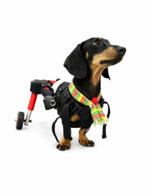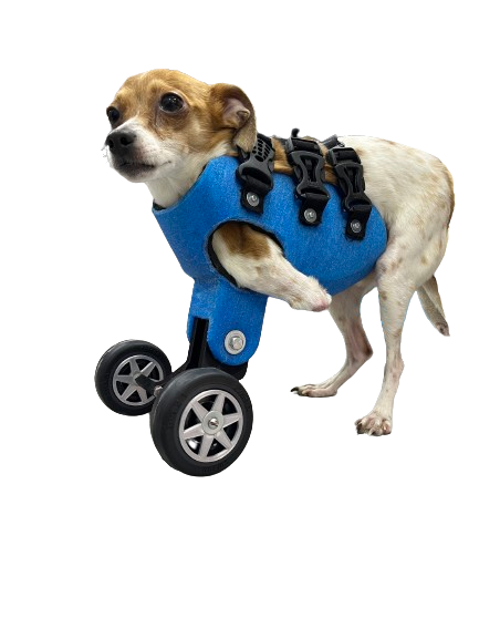 Silla de ruedas diseñada especialmente para mascotas que han sufrido amputaciones en ambas extremidades delanteras o presentan malformaciones que limitan su movilidad. Este dispositivo se adapta de forma personalizada al cuerpo de tu mascota, brindándole un soporte seguro y estable que le permite volver a desplazarse con mayor comodidad. Una solución creada para ayudarle a recuperar su independencia, fortalecer su confianza.